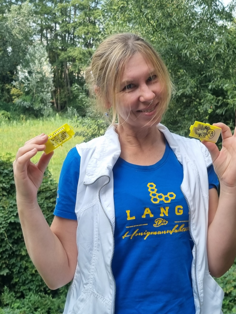 Heute betreut Jovita Lange einige Hundert Zuchteinheiten und 30 Versuchsvölkern. Hinzu kommt im Juli eines Jahres die instrumentelle Besamung von Bienenköniginnen, um Zuchtstoff für unseren Zucht- und Vermehrungsbetrieb zu generieren.